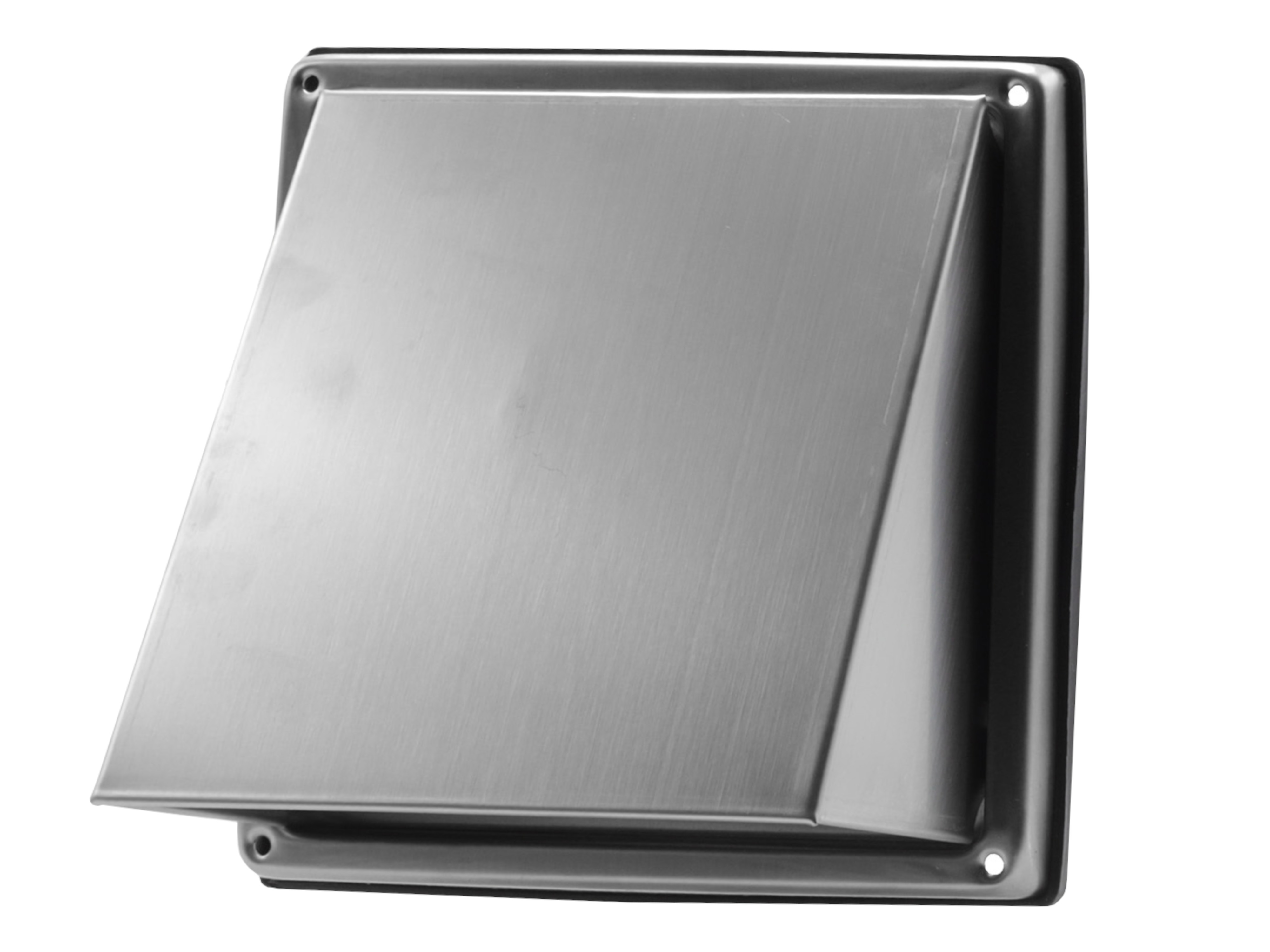 Een fraai design gevelrooster met een schuine kap voor luchtafvoer, gemaakt van RVS.