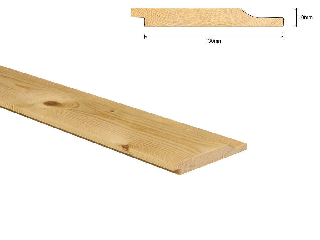 Vuren C rabatdeel 18x130 mm. - L = 3,60