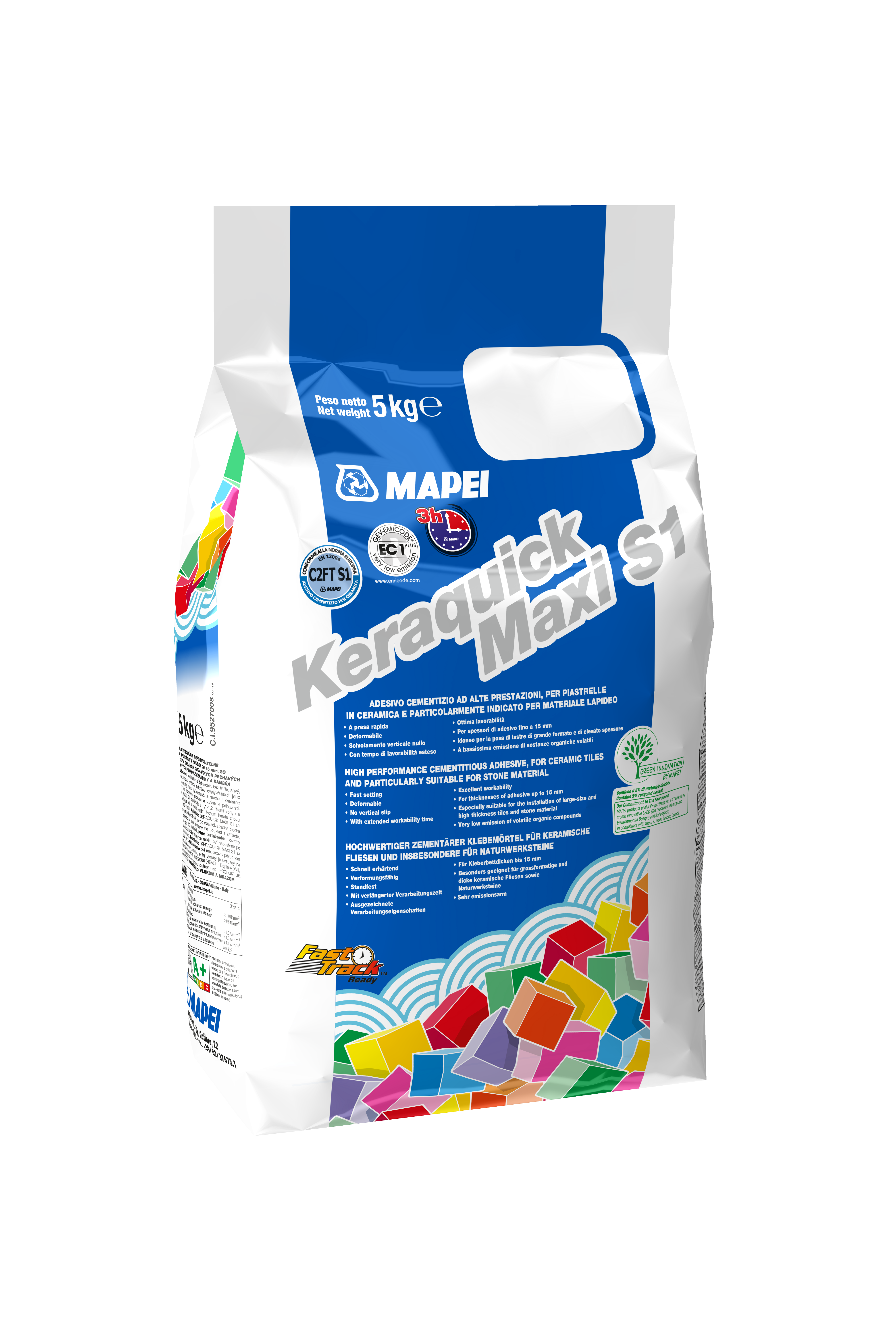 Keraquick S1 is een snelle, wit of grijze cementgebonden, zeer flexibele dunbedlijm voor het verlijmen van keramiek en natuursteen binnen- en buitenshuis in laagdikten tot 5 mm.
